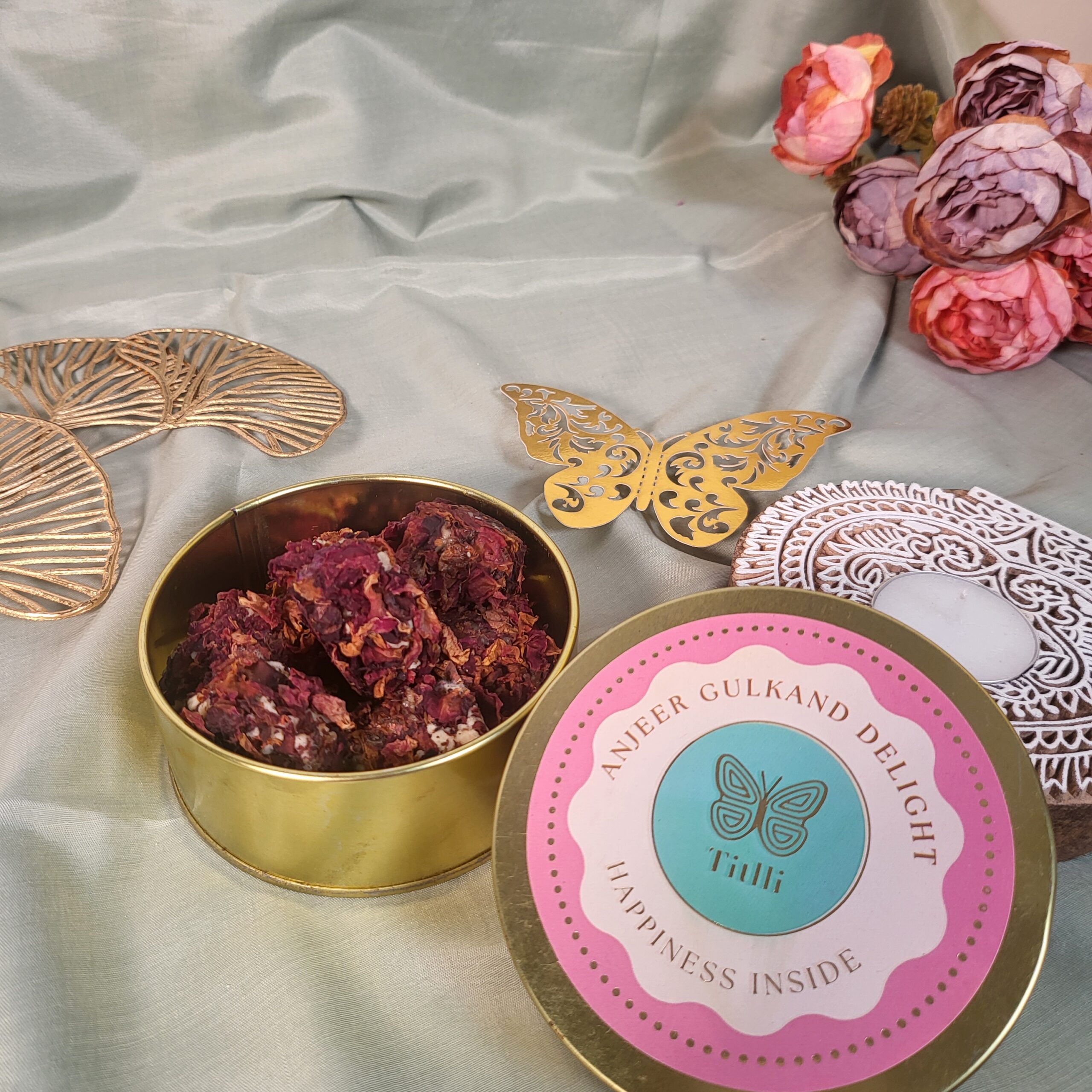 The Titlli’s Grande Flutter Box, with 4 elegant 125g tins, brings a touch of luxury and charm, making it a thoughtful gesture for special occasions.